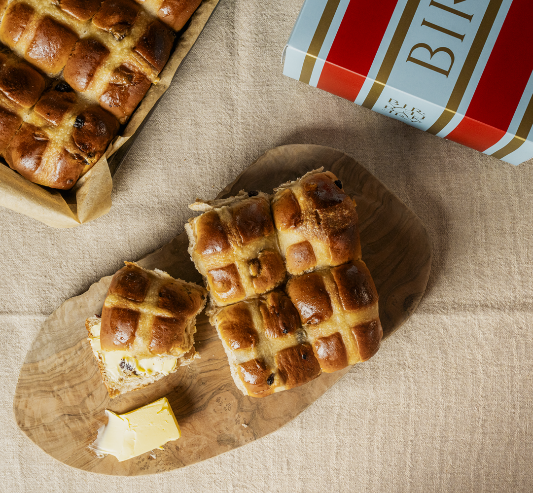 Classic hot cross buns, softly spiced and studded with dried fruits.*Price per item
